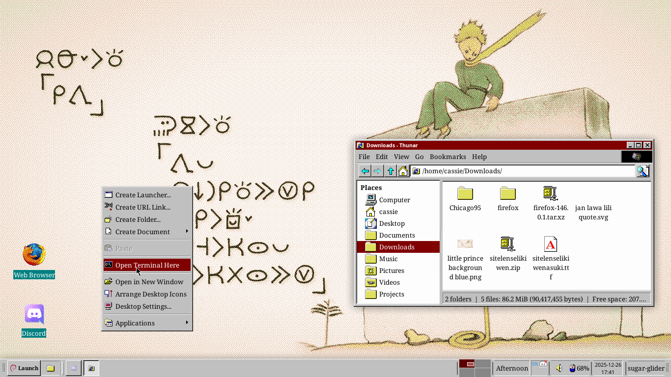 I'd been interested in using Chicago95 to set up a cool retro look for my desktop, but it requires xfce and I'd been happily using KDE Plasma for a while - I took the discontinuity brought on by the death of flying-fox as opportunity to adjust to xfce and set up Chicago95!